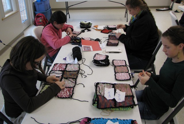 Note the labels and elastics on the table. The older girls did a great job staying on task and getting their rows sewn together neatly and efficiently.