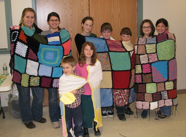 Back in October I put out a call for knit/crochet squares for a Warm Up America! afghan project I was coordinating with the girls’ 4H club. This is the third year we’ve done the project (see previous years here and here) and it’s a rewarding and enjoyable experience for everyone involved.