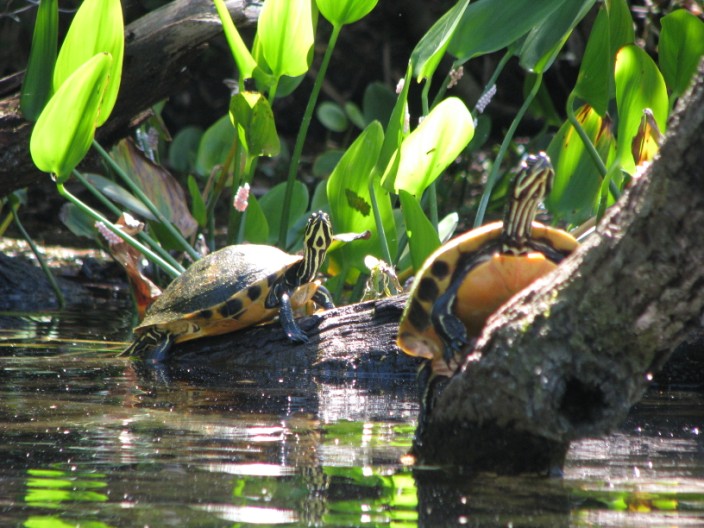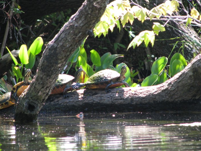 turtles sunning themselves on logs….