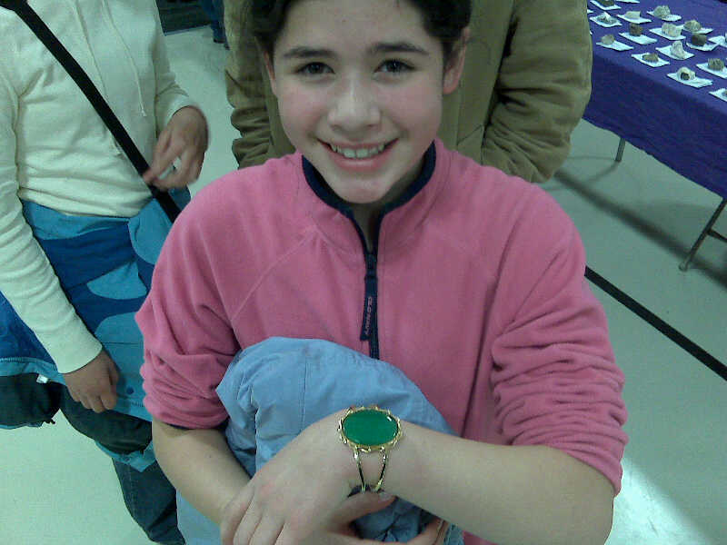 There were other games to play (including panning for gold) as well as grab bags (one free for all kids at the event, another she paid $1) that included some great finds. But the highlight for her was the silent auction. She had $5 left and found a bracelet she really liked on the auction table.