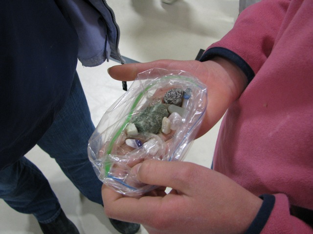 L. left with a lot of loot from the event. She dug in the mini-mine and came out with some rocks she really liked (it’s $1 for 1 minute of digging – more than enough time to find some great stuff worth more than that).