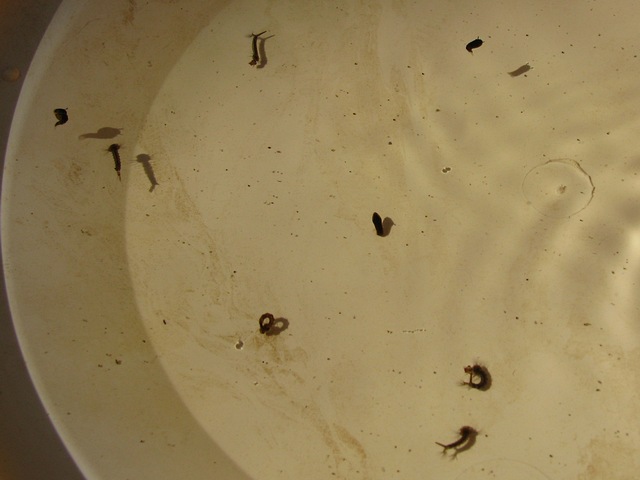 After a bit of research at home with some help from the UMaine vernal pool research website, we discovered that the thousands of little black invertebrates we found were actually mosquito larvae.