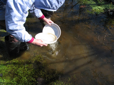 The girls and I were doing some more field research for the UMaine vernal pool research project this past weekend. Last year during our late-April research outings, we found frog and salamander egg masses at the vernal pools we visited. This year spring came early and when we went out this weekend (the same weekend as last year), we found fairy shrimp, a vernal pool indicator species that doesn’t usually make an appearance until May.