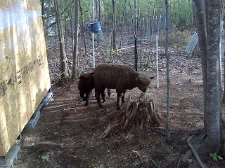 But we did manage to catch a few pictures of the lambs in their new pen. The pig pen is nearby and they’ve been checking each other out the past couple of days.