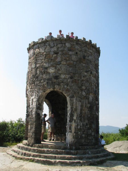 The tower at the summit of Mount Battie reminded the girls of the one on Douglas Mountain in Sebago. And the panorama display at the base of the tower identifying the islands in Penobscot Bay was helpful, since we had wondered while at the top of Mount Megunticook about the various islands we could see from there.