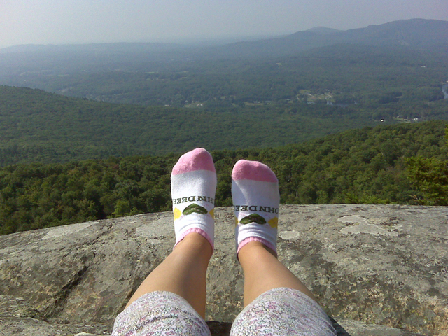 My oldest loves photography and took a bunch of photos before the camera was turned over to my youngest for the quintessential hiker’s photograph — feet framed by the mountaintop view. For her this meant a shoeless shot, since she’s known for kicking off her hiking boots at the top of mountains before settling in for a snack break.