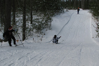 If you have recreational cross-country skiing kids like mine, you’ll discover there is a natural tendency to ski on knees and butts (with boots still in their bindings). In case you have never seen this, let me assure you that my kids and their friends can glide down hills in either position fairly easily. For me, it’s not only undesirable to contort my less than nimble ankles for this, it’s far from an easy thing to balance down the hill without a wipeout.