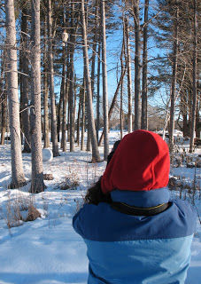 A hike through the woods led us to the shoreline to see ducks. We saw mallards, and further in the distance, some red-breasted mergansers. Hynes carried a field scope and set it up while explaining that the red-breasted mergansers have a funky, punk-like crest atop their heads. Through the scope we could see a magnified view of what he meant by that accurate description.
