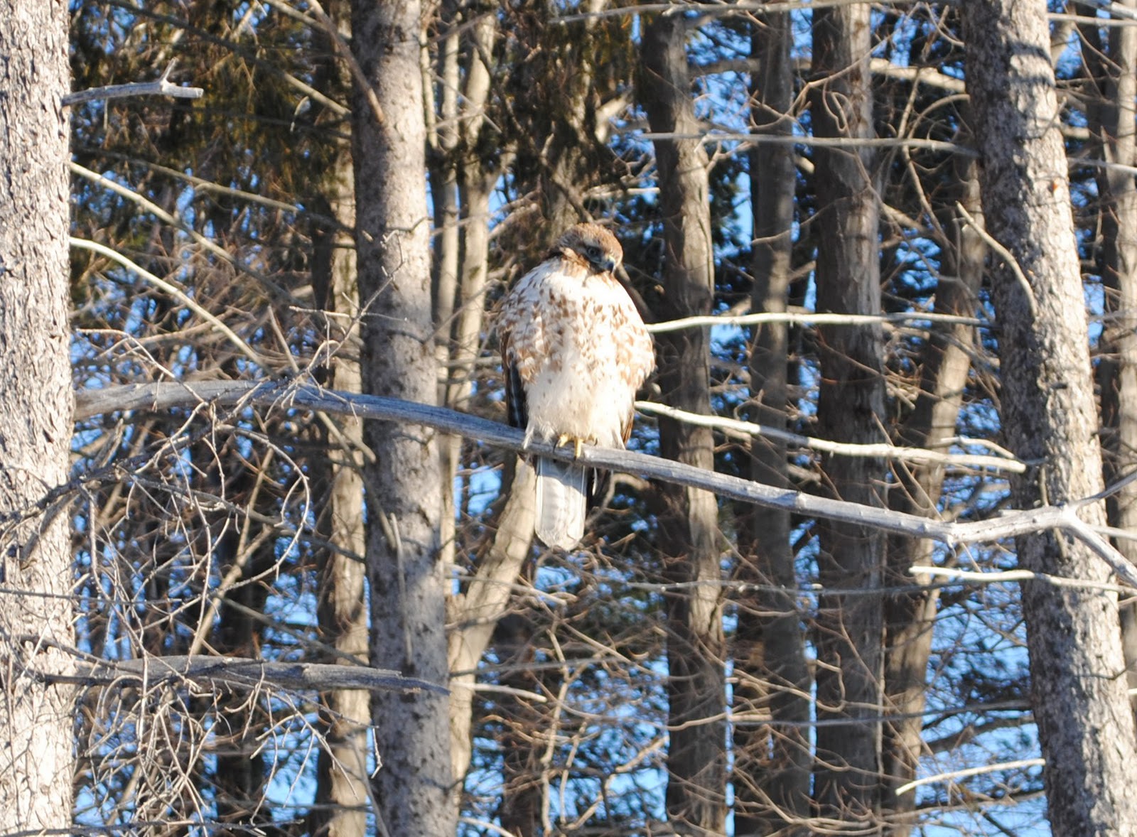 We spotted a red-tailed hawk hanging out on a branch near the Audubon building. The hawk was on an exposed tree limb and all the camera-toting participants were cooing over the clear shot they could take of the regal bird. My daughter took this opportunity to remind me she needs a zoom lens for her camera. This is an ongoing request and she appreciated the in-the-field example to prove her point.