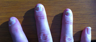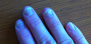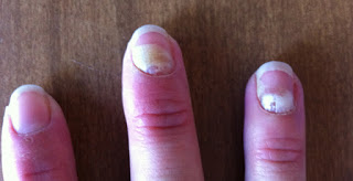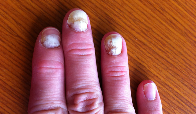 About a month after I stopped the anti-fungal, one of my fingernails started to get milky white. Then another followed suit. Then those nails started to turn yellow and started growing ridges and lifting away from my cuticles. That’s when the pain started. Think pins-being-poked-under-your-fingernails torture chamber activity – all day, all night.