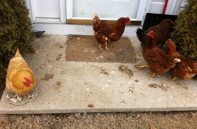 Wishing for the snow to melt is still awhile off given the upcoming nor’easter forecast for tomorrow, I know. But really Mother Nature, my indiscriminate poopers need a new hangout. Preferably in the open field garden next to their coop.