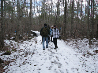 But this was just a warm-up for L. with our spring hiking adventures. I knew the request to take off her shoes would come shortly after we arrived Ferry Beach State Park even though the trail to the beach was snow-covered.