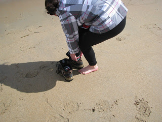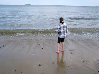 …before she decided a dip in the ocean up to her ankles was too compelling for her to resist.