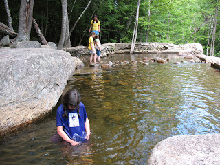 For fans of geocaching — a game using a GPS unit and coordinates to find hidden “treasure” — there are several boxes on this trail. We have found a handful on the way to, and around, Lucy Brook. You can do a latitude longitude search on geocaching.com using these coordinates to find several listings: N 44° 04.478 | W 071° 09.823.