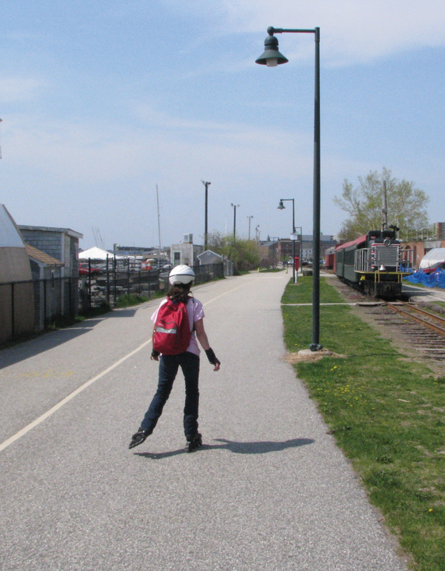 For our first inline skating adventure of the season, my family decided to check out the new Bayside Trail in Portland. It connects to the Eastern Prom trail and since we’ve skated that trail, we figured the Bayside Trail would give us a bit more mileage to explore while appealing to our desire to skate along the waterfront.