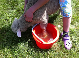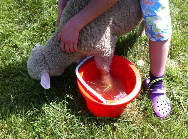 Pearl doesn’t mind the foot soak as long as the bucket doesn’t get in the way of her grazing.