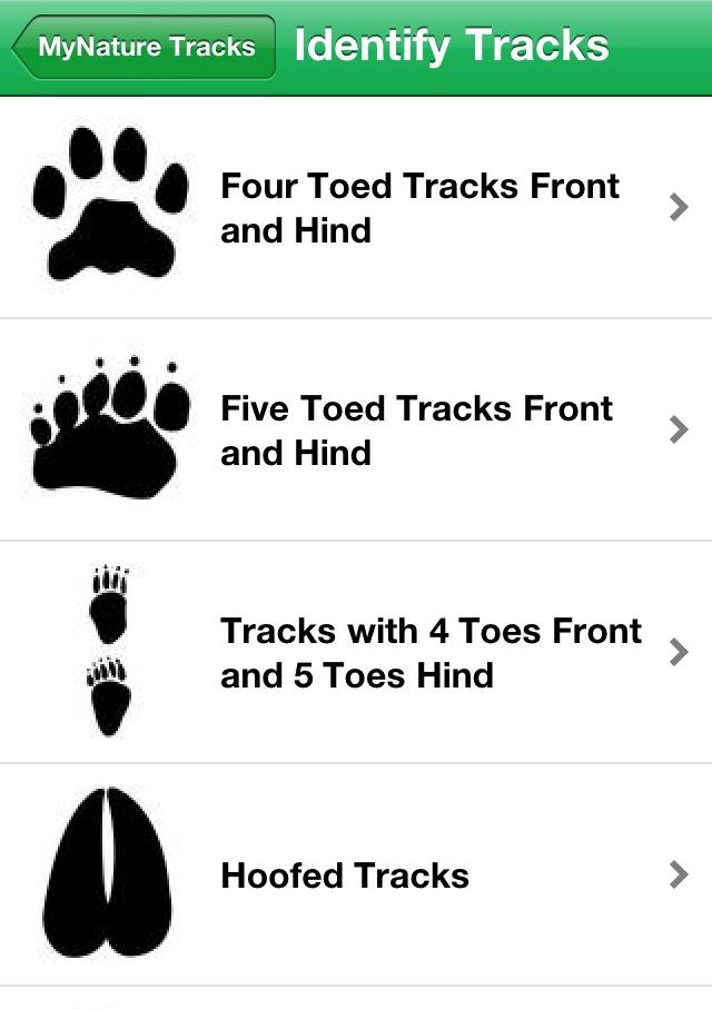 * MyNature Animal Tracks from MyNature Inc.: You can identify tracks you see in the woods with this very user-friendly app.