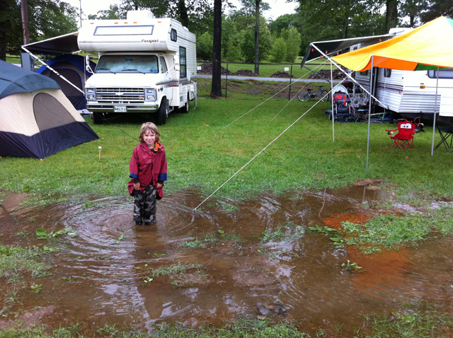 But this is the picture of our little 5-year-old friend is the one I think sums up how much rain we were dealing with during our camping weekend.
