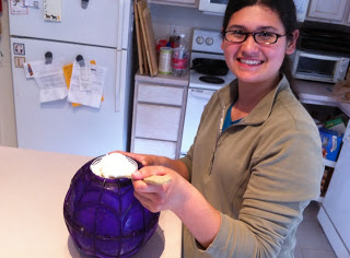 Another day G. tried to make an orange juice-flavored ice cream. She used a 1/2 pint of orange juice and a 1/2 pint of half and half. After 25 minutes of kicking the ball around the mixture was still only slush-like. She said that was OK because it made a tasty, creamsicle slush.