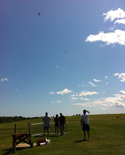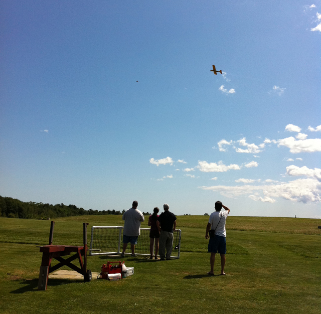 We were at the Propsnappers’ field in Scarborough, which is not far from the Jetport. At one point an actual airplane came in to view and it didn’t look that far off the ground. I was mesmerized by the proximity of the large airplane to the model planes in the air. It looked very close from our viewpoint on the ground. But of course, they weren’t. But when I looked around, all the kids were watching the big plane fly overhead just as I was.