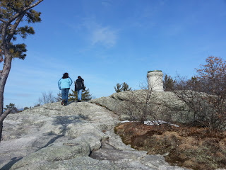 With Jockey Cap’s circular stone monument with a 360-degree sculpture of the surrounding mountains and corresponding identifying labels, I thought this trip would be a great way to start planning our spring and summer hiking adventures. We brought along our AMC White Mountains Guide so we could figure out elevation gain for each of the mountains around us and see what appealed to each of us.