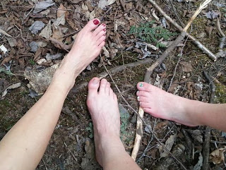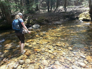 Then there was the next big crossing that did not offer stepping stones or logs. After walking up and down the river bank in each direction we determined the only way to get across was to walk through the water. There were no stepping stones above the water and it was only knee-deep. So we pulled off our socks and boots to walk across barefoot. The water was so incredibly cold that my 15-year-old said her feet felt like they were burning from the cold. Not so comfortable but it was a narrow crossing and we all did it without incident.