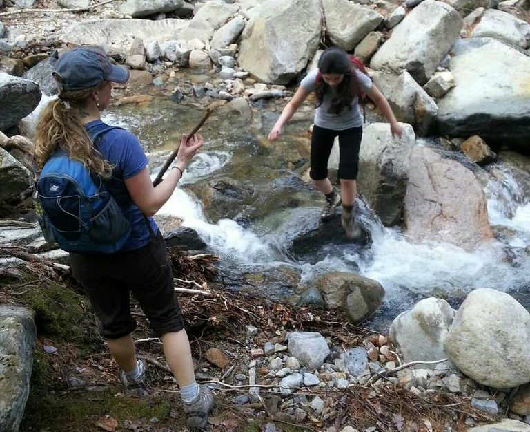 The first was the typical walk across on logs. The logs didn’t feel all that steady to the adults of the group so Shannon decided to head down the river to a large log she had to straddle and shimmy across. I didn’t think the straddle thing looked all that fun so I found another way to cross. We each had our own style and we had a good laugh about it.