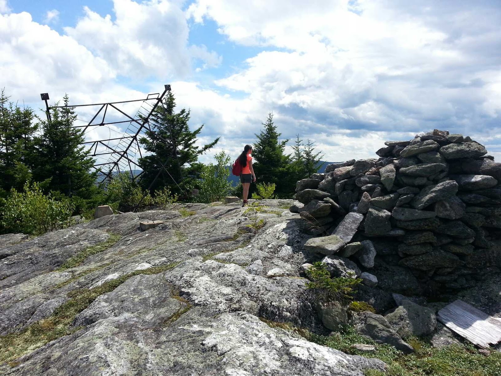 We reached the summit to see a fallen-down fire tower and a wonderful mountain-top view. The fire tower carnage was interesting but the kids and I found the wind turbines on Spruce Mountain to be another fascinating feature. We also spotted some of the mountains we’ve hiked previously and that’s always a fun geography lesson for the kids.